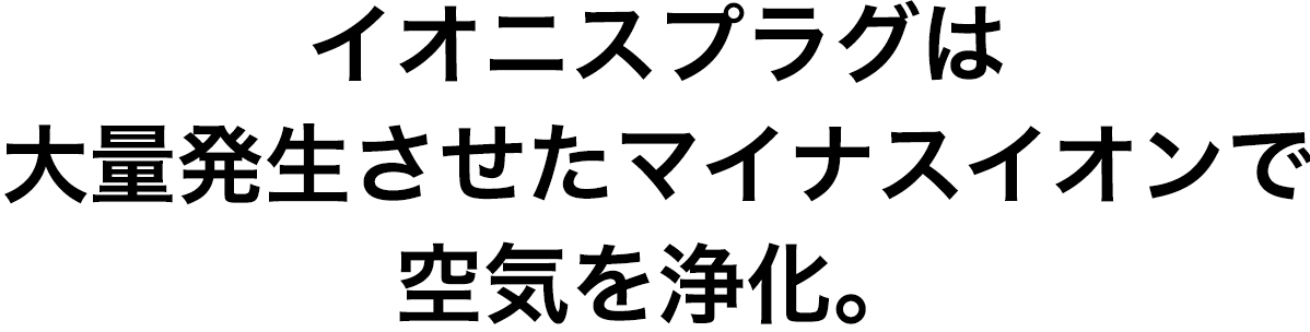 A:イオニスプラグは、オゾンがほぼ発生しません。これまで多くのマイナスイオン式からはオゾンが発生し、問題にもなっておりました。しかしイオニスプラグは、イオニス独自技術であるIPI(Ionic Plasma Ion)により、オゾンは発生しませんので、心配なくご使用いただけます。