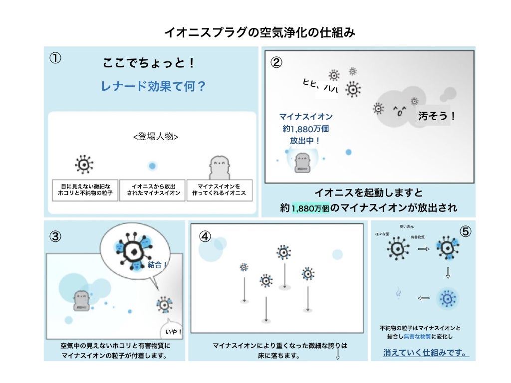 イオニスプラグは、元LG電子の技術者であった社長が十数年かけ、室内の有害物質を減少させる独自の技術を盛り込み、低コスト化、小型化に成功した画期的なイオン発生器です。