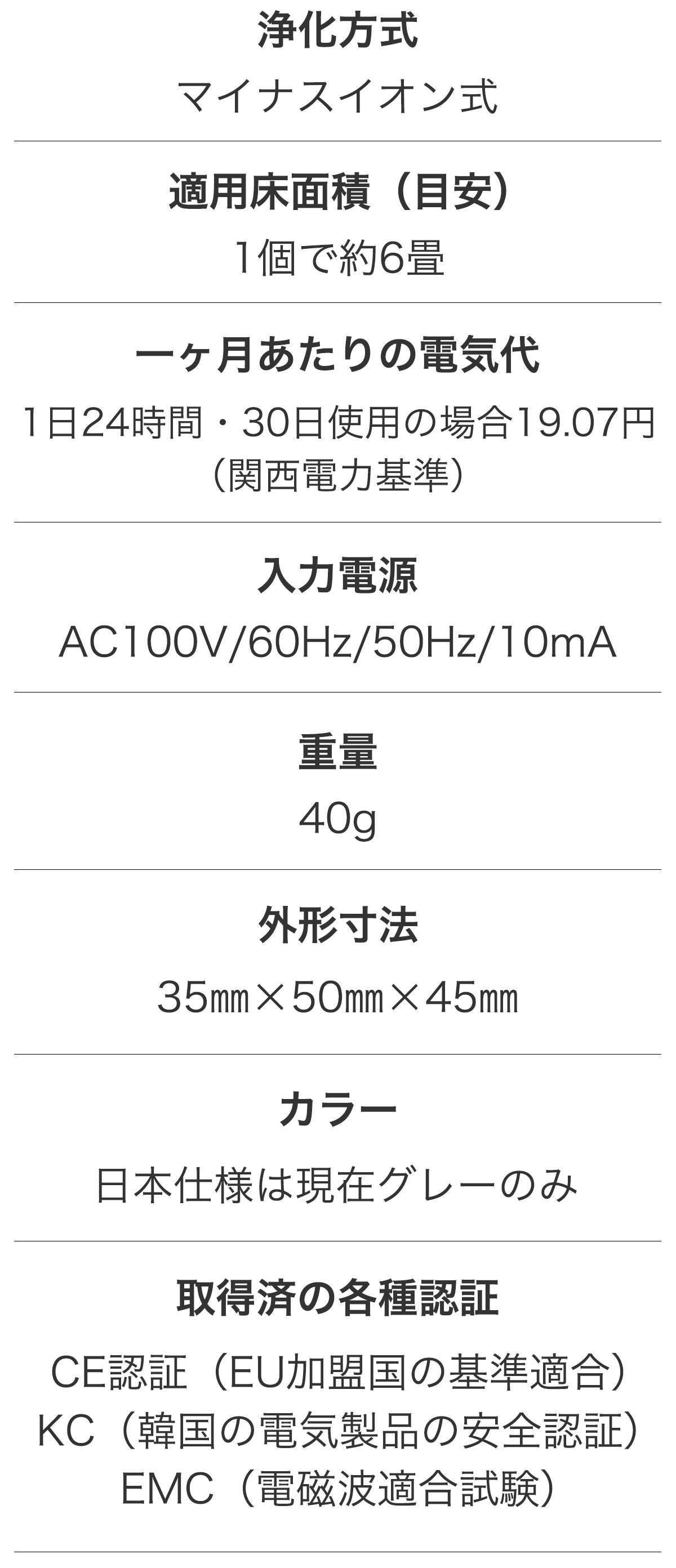 わずか40グラムの軽さで必要な時に持って移動する際にも便利ですし、ACコンセント対応車両では車内室内用空気洗浄機としてもお使いいただけます。