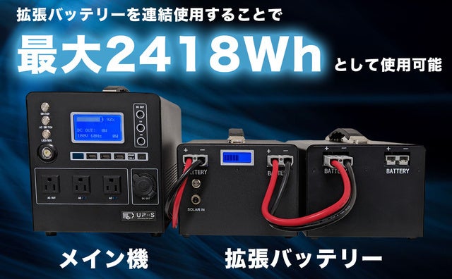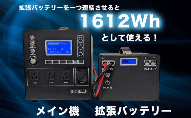 それでも、容量が不足してしまう場合は、以下の様に806Whの拡張バッテリーを接続することで倍の1612Wh容量となります。