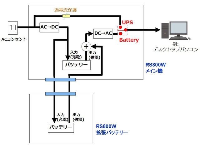 以下は、メイン機と拡張バッテリーの簡単なブロック図です。