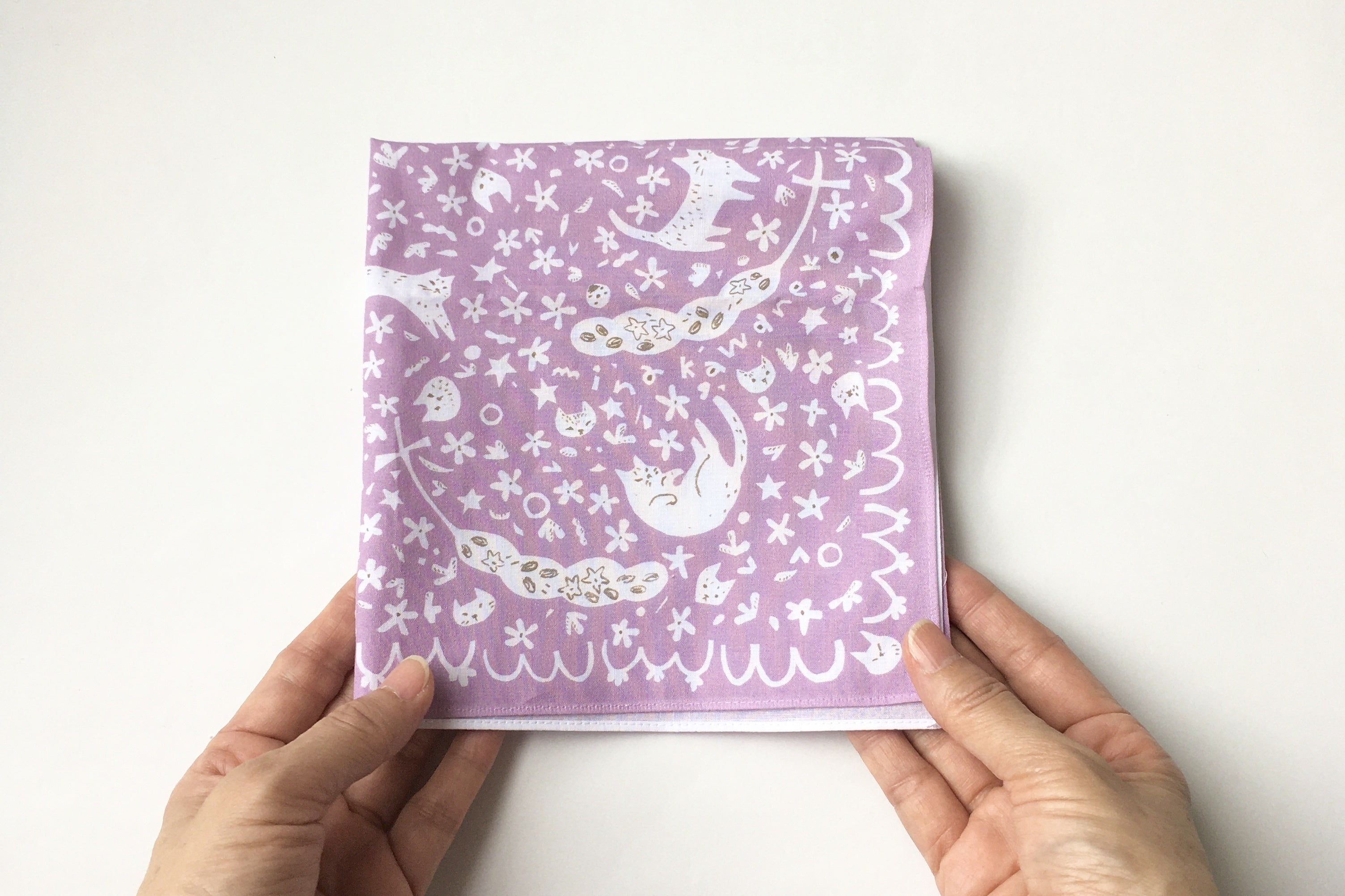 ラベンダー色の猫をさらに楽しむスペシャルアイテム、ハンカチも登場!