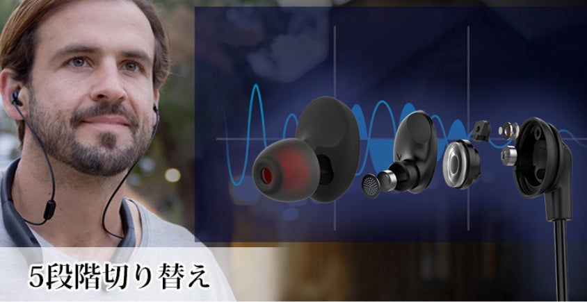 MPlusには安全面を配慮した設計で、クリアな音を耳に届けることができる5段階調整ノイズキャンセリング機能が搭載されています。