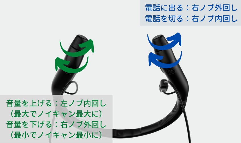 音量の上げ下げや電話の応答・通話終了、次曲・前曲の選択などの操作が全て片手でノブを回すだけで完了!