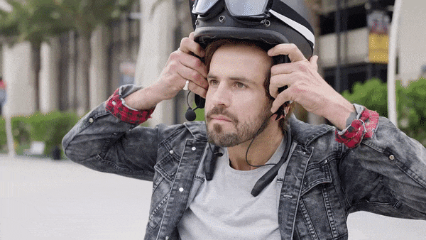 ヘルメットを被って「カチッ」とアタッチメントを接続したらイヤフォンからインカムに切り替わります。