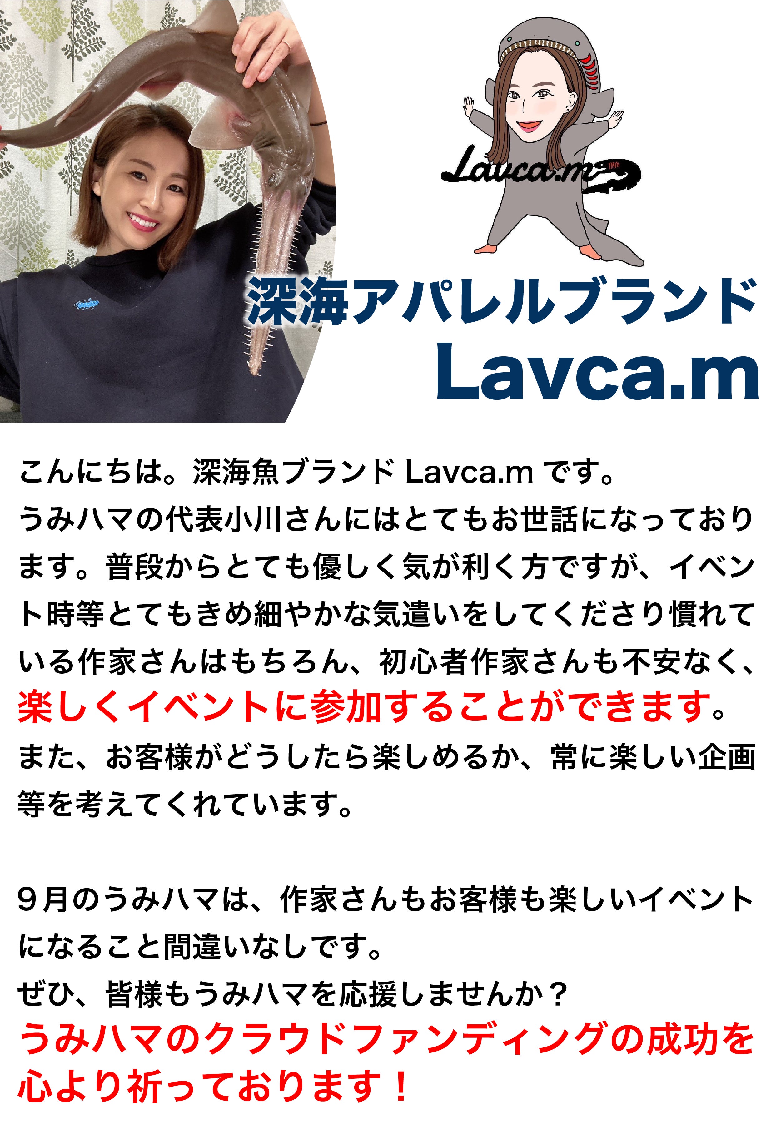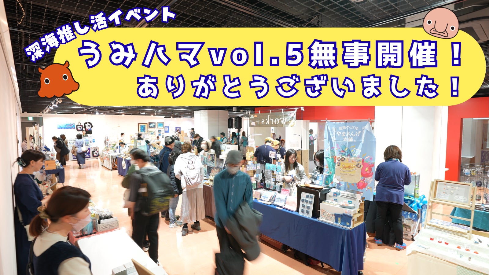 2026/03/20 13:37【開催報告】深く、温かな2日間。「うみハマvol.5」終了のご報告皆さま、こんにちは。「うみハマ」代表のゆかっぺと、副代表のいおしゃんです。 3年前、このクラウドファンディングで皆さまに背中を押していただいたおかげで、「うみハマvol.5」を無事に開催することができました!会場は終始、深く柔らかな「深海愛」に包まれていました。■「ここじゃないと出会えない」が溢れる場所に「1日中楽しめた!」「他では出会えない推し生物のグッズにやっと会えた!」というお客様の声。そして作家さんからは「マニアックなモチーフに反応がもらえる!」という喜びの声。 さらに今回は、コミュニティメンバー(なんと小学生も!)による研究発表ブースも登場しました。「好き」を原動力に自ら学び発信する姿に、この活動が新しい文化として根を張り始めていることを確信し、誇らしく感じています。■ 二人では見れなかった景色この光景は、私といおしゃんの2人だけでは決して作れませんでした。 最高の作品を届けてくださる出展者の皆さま、足を運んでくださるお客様、そして支えてくれたスタッフのみんな。関わってくれたすべての「仲間」のおかげで、また新しい深海へと潜ることができました。■ うみハマを「10年、20年」続けていくためにイベントを終えるたびに、この場所を絶対に失くしたくないと強く思います。 現在、運営は私といおしゃんの2名が中心です。生活のための仕事と両立しながらの活動は、どちらかが体調を崩せば準備が止まってしまうほど、実はギリギリの綱渡りでもあります。この場所を、2人の「根性」ではなく「みんなの仕組み」で守り、10年先も続けていきたい。そのために今、私たちはWebコミュニティに力を入れています。いただいた会費は、セミナー講師を呼んだり、環境問題を考える企画、そして支えてくれるスタッフへの対価として活用させていただきます。一気に広げたいわけではありません。「深海の話を日常的にしたい」「一人での活動を誰かに相談したい」そんな方々と繋がり、運営を少しずつ分担して、長く続くチームを作りたいと思っています。そして仲間と共に一歩ずつ「楽しい妄想」を形にしていければ嬉しいです。私たちの挑戦を、少し近くで応援・体験してみませんか?▼うみハマの「応援団」コミュニティはこちらから https://umihama.base.shop/(水中ドローンの貴重な映像やオフ会など、深海を楽しみ、存続を支える場所です)これからも、より深く魅力的な深海を目指して。 本当に、ありがとうございました!!うみハマ代表 小川ゆか子 副代表 いおしゃん もっと見る