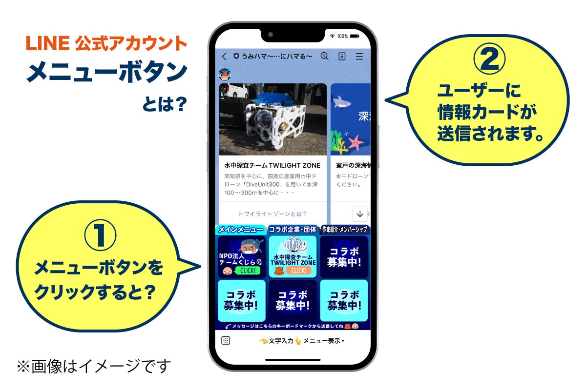 そんな「うみハマLINE公式アカウント」には、[協力企業・団体]を紹介するメニューボタンがあります。