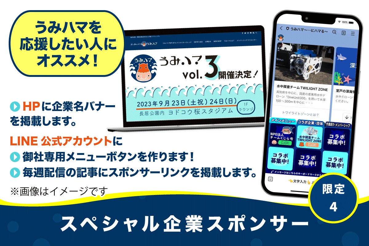 今回、スペシャル企業スポンサーにご支援いただいた企業様・団体様とうみハマが一緒に企画を考えたり、イベントを企画したりできるとさらに深海の輪が広がるのでは、と考えています。