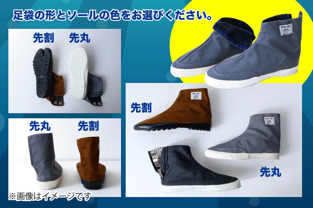 地下足袋はソールの形(先割、先丸)とソールの色、裏地の色を選べるのでセミオーダーで自分好みの地下足袋を作ってくださいね!
