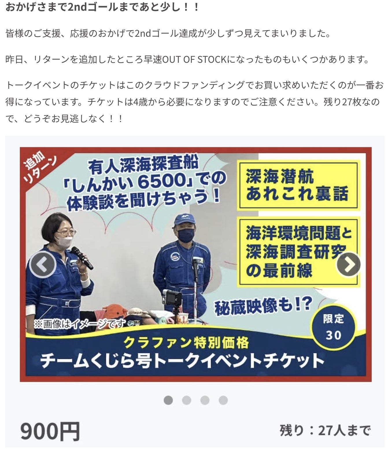 既にご支援いただいている方でさらにカイメントークショーをご支援していただける方は、それぞれに金券がつくため500円分の金券を差し上げます。本日以降は1世帯1枚、250円の金券を差し上げます。