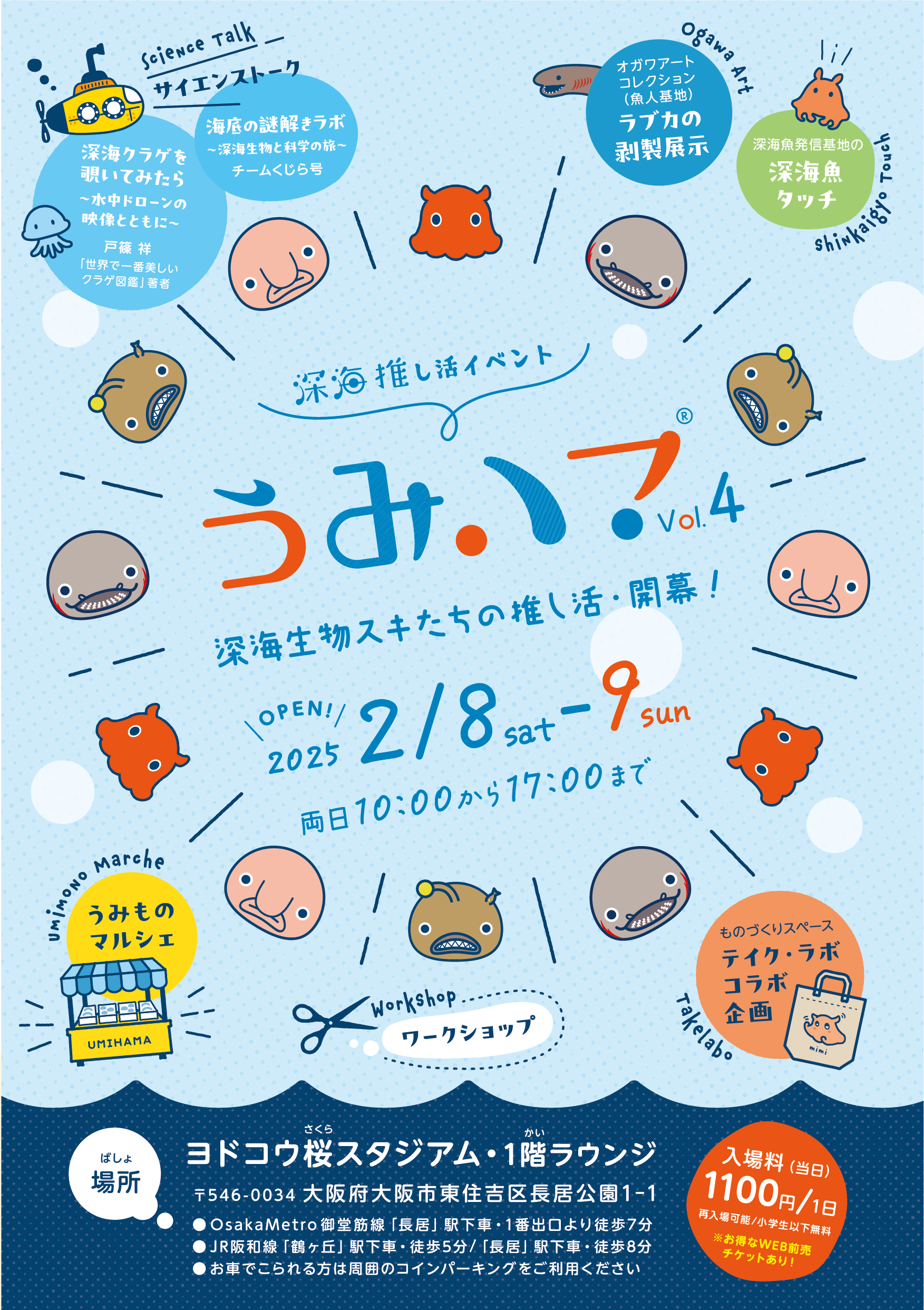 深海魚タッチでは、関西初上陸!「深海魚発信基地」の村井さんが選りすぐりの深海生物を持ってきてくれます。