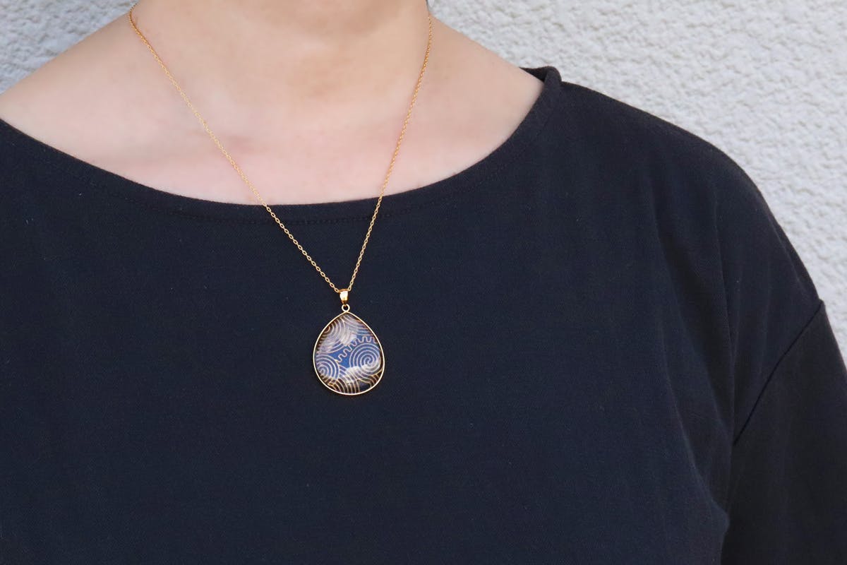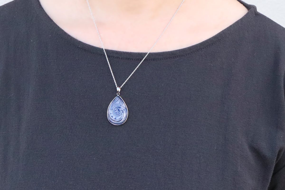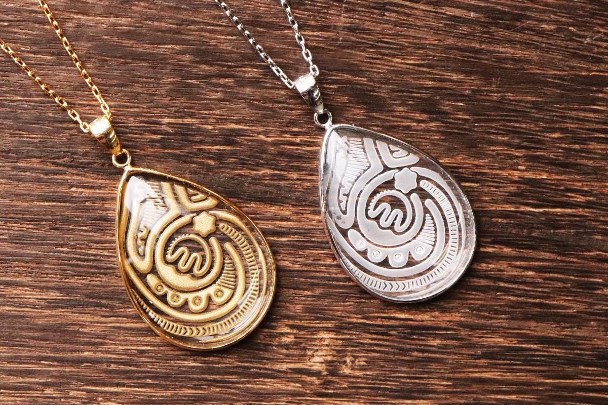【縄文文様(渦巻文) 水晶つゆ型ペンダント】
