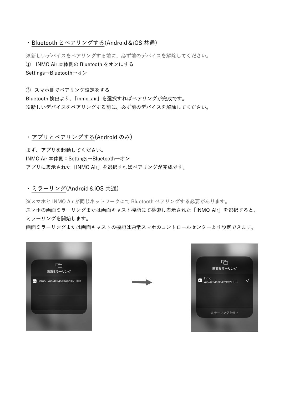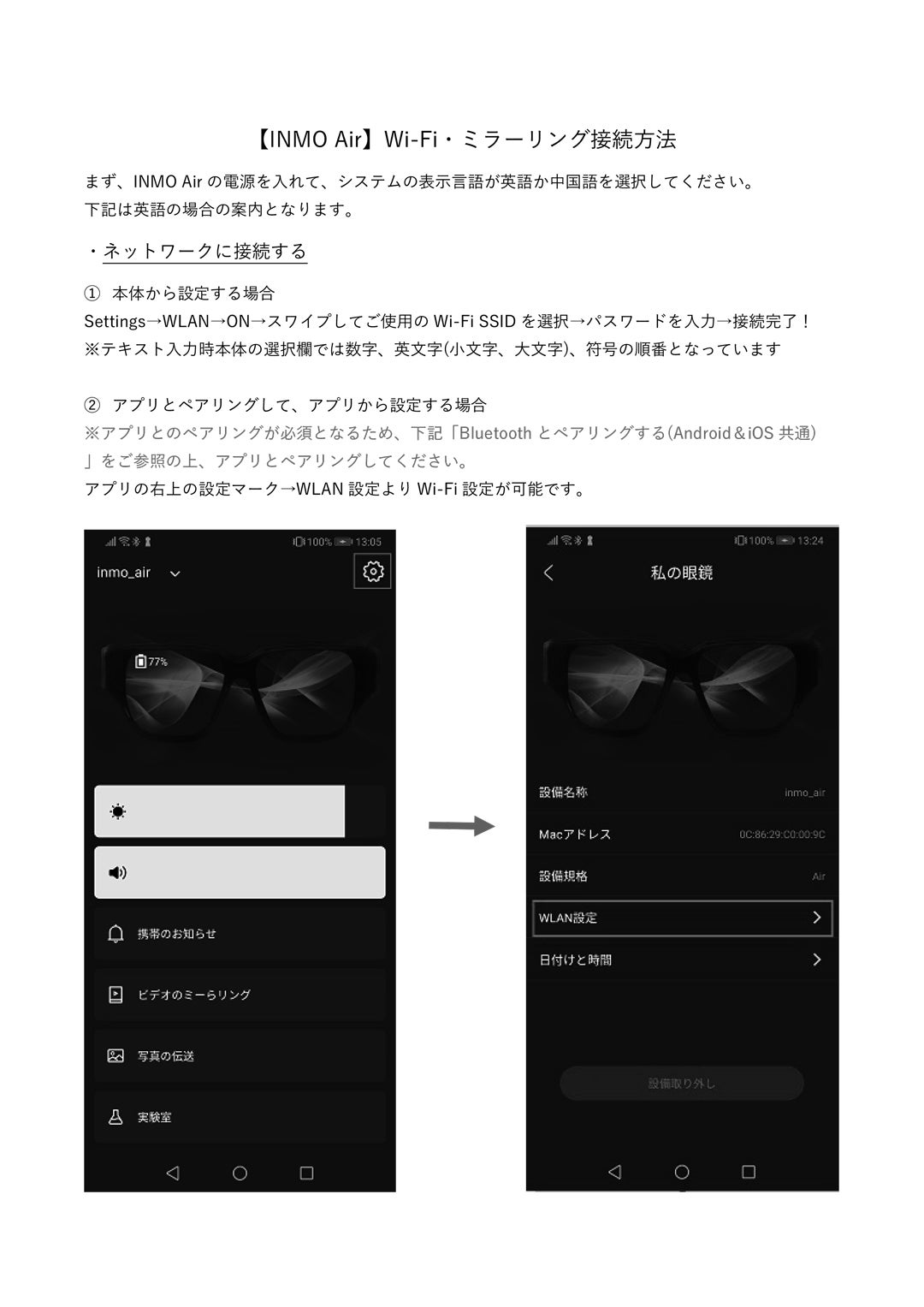 Wi-Fi・ミラーリング接続方法については画像の手順に従い行ってください。