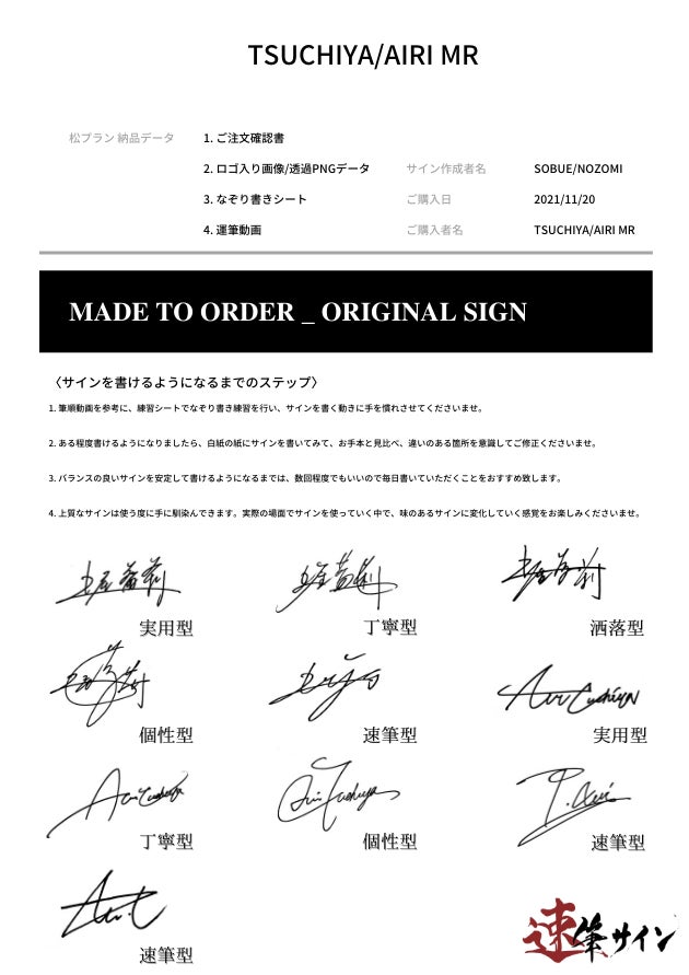 なぞり書きシートだけでは分からない、サインを書くスピード、緩急の変化などもご確認いただけるよう、筆順動画も一緒にご提供致します。