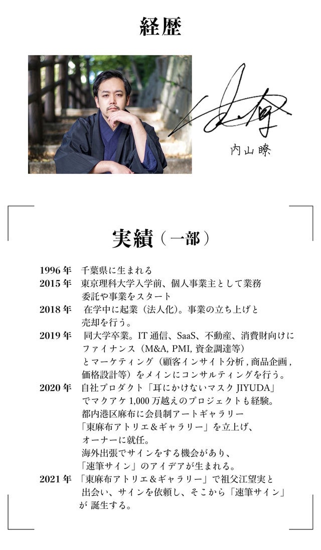 祖父江望実が経営者や芸能人の方向けに作成しているオリジナルサインを数量限定で、特別価格(最大70%OFF)で販売致します。