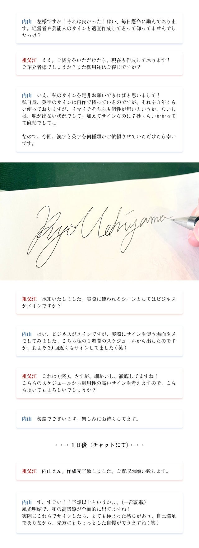 更に今回、約3,000名近くの様々なお名前を練習&研究をして、より高品質なサインの創作に成功しました。