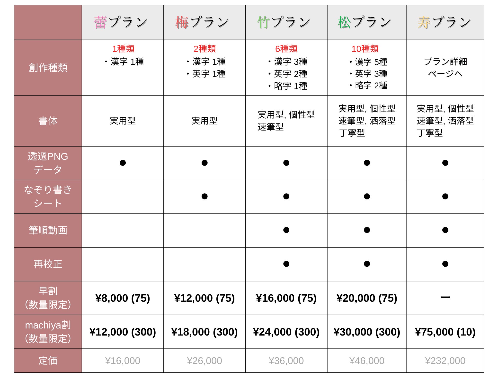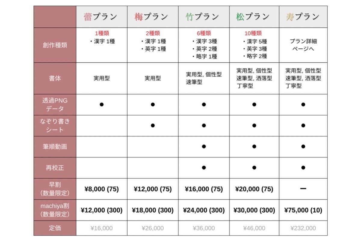 【筆文字納品オプション】 各プランの料金 +10,000円(税込)