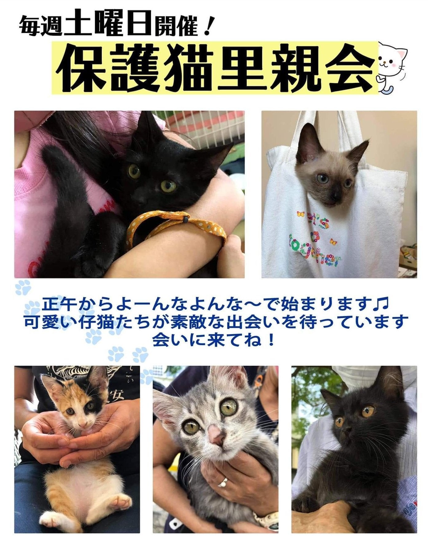 毎週土曜日には保護猫里親会を行っています。これまで50匹以上の保護猫が里親につきました。