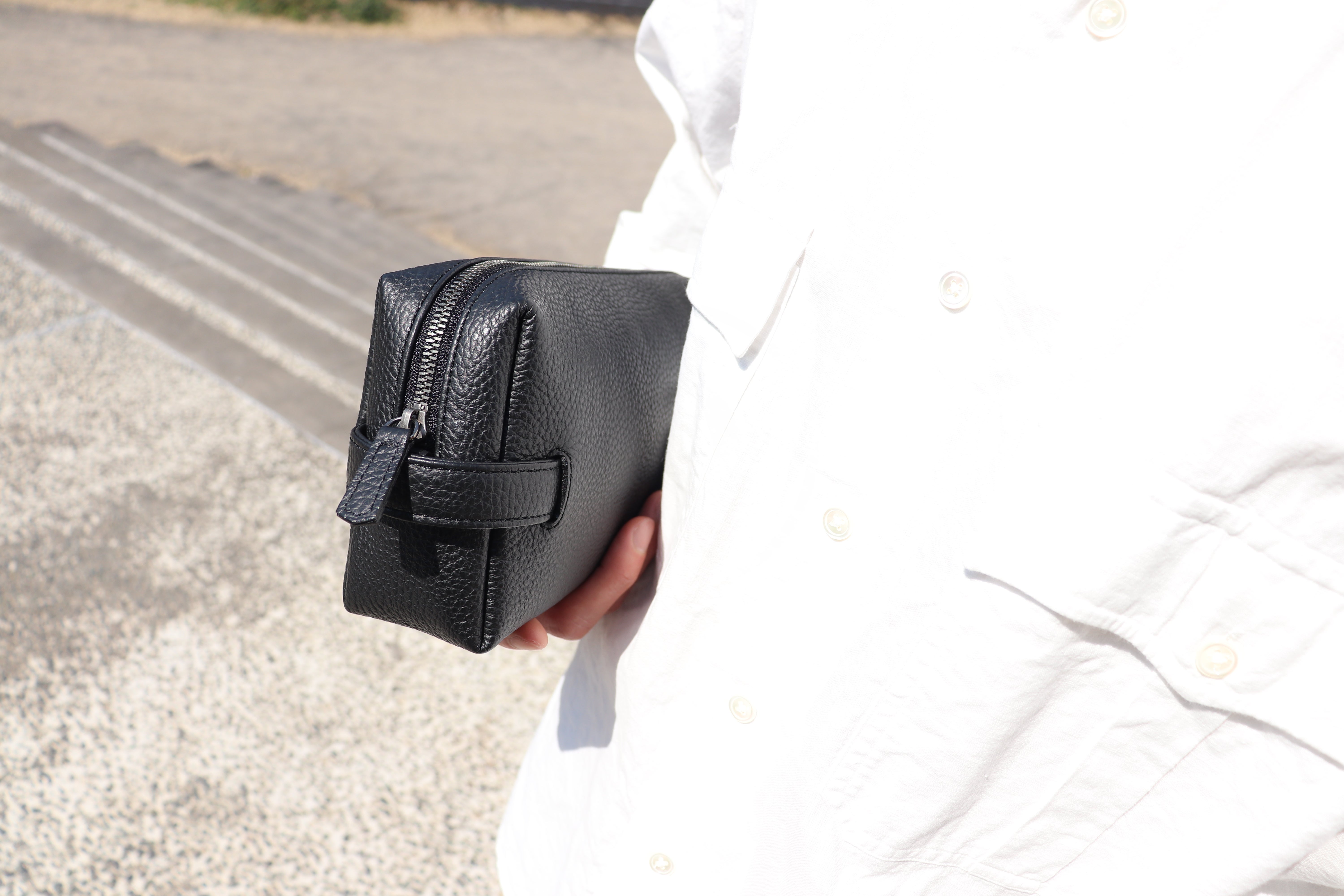 例えばファスナーは開閉のスムーズさが非常に重要です。バッグやブルゾンでファスナーの滑りが良くないモノに当たったことはありませんか?ヨーロッパやアメリカのファスナーも色々使ってきましたが、やっぱり安定感があって長く使えるのはYKKのEXCELLAファスナーです。エレメント1つ1つに入念な磨きをかけ、美しさと滑らかな手触りを追及した高級感漂うファスナーです。このバッグではギラギラとしないブラックニッケルカラーを選びました。同様に他の部位で使っている金具もブラックニッケルカラーを採用し統一感が保たれています。私達の身のまわりのモノ。ブルゾンのファスナーや時計のべゼル、ベルトのバックル、アクセサリー等、様々な金属が使われていますが、どのカラーの金属カラーにもコーディネートがマッチングする色です!!