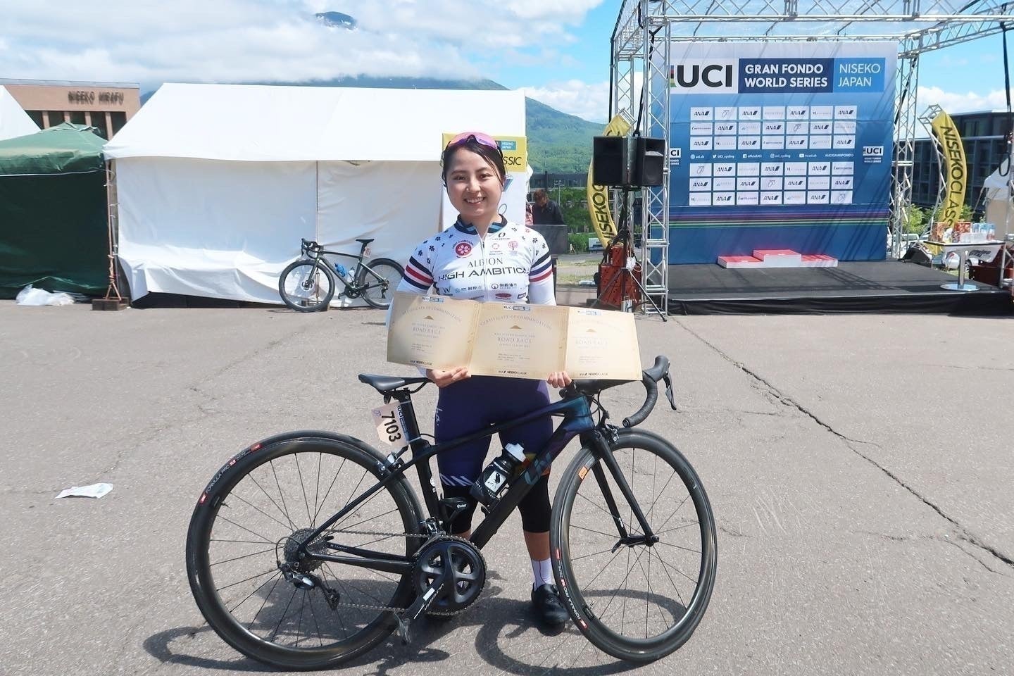最新のことで言うと、2022ニセコクラシック150kmを女性で唯一完走し優勝することが出来ました。