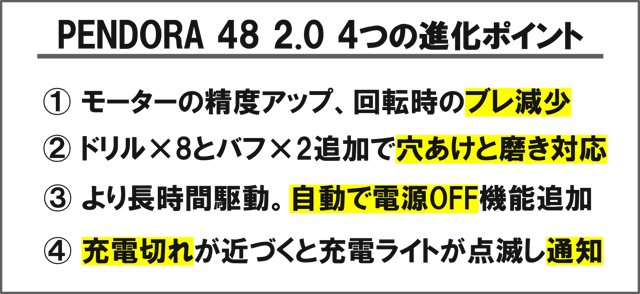 ・PENDORA 48E 1本:ビット 48個 / ドリルセット(ドリル8個 + バフ2本)
