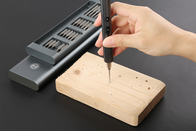 高速回転ながらも、非常に細かい操作が可能で、指先でビットの回転を簡単に制御できるため、木や紙などの柔らかい素材でも、思いのままに作業できます。