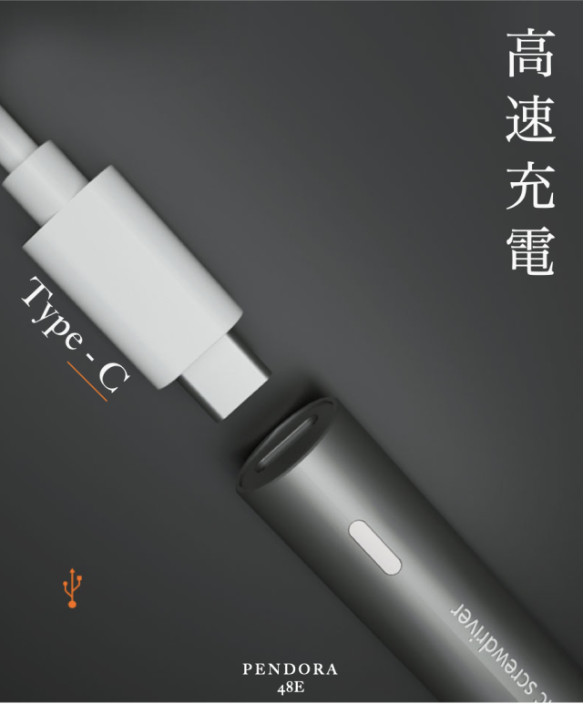 PENDORA 48E 2.0は大容量の350mAhのバッテリー容量を誇り、充電にはUSBType-Cケーブルを使用するためスマホのように簡単に充電できます。