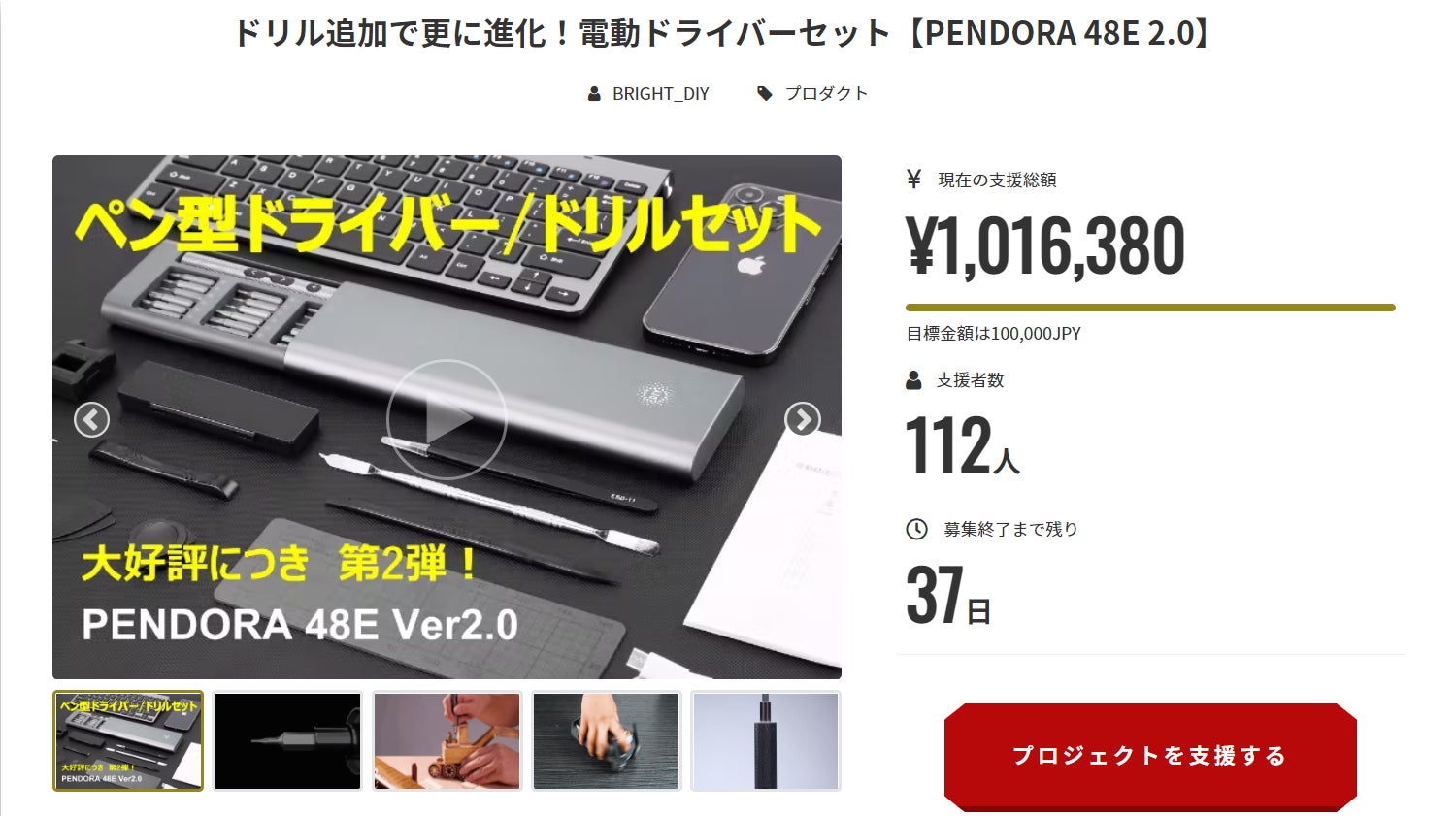 皆んなさん、こんばんは。本日の活動レポは、PENDORAに関してよくある質問についてです〜Q. 保証期間はありますか?A. 長期1年間の品質保証させて頂き、初期不良に関しましては無料交換で対応させていただきます。安心してお使いください。Q. ビットはいくつありますか?A. PENDORA 48Eには48個のドライバービット+10個のドリルビットを用意しております。また、ビットの上にサイズが刻印されており、探しやすいです。Q. ビットを本体にセットした時に、グラつきや、緩かったりしませんか?A. 本体にビットを隙間なくぴったりとセットできます。Q. 増し締めは出来るのでしょうか?A. そのまま増し締めできます。Q. 手締めした場合、空回りしないでしょうか?A. 手締めでも空回りしません。Q. LEDを照らしながらの作業は、出来ますか?A. 照らしながらの作業できます。他にご質問があれば、いつでもメッセージください!また、Brightチームは当プロジェクトをより多くの方へ知って頂きたいと考えております。よかったら、FacebookやTwitter等のSNSでのシェア・拡散をお願い致します。https://camp-fire.jp/projects/view/601414どうぞよろしくお願い致します。Brightチーム