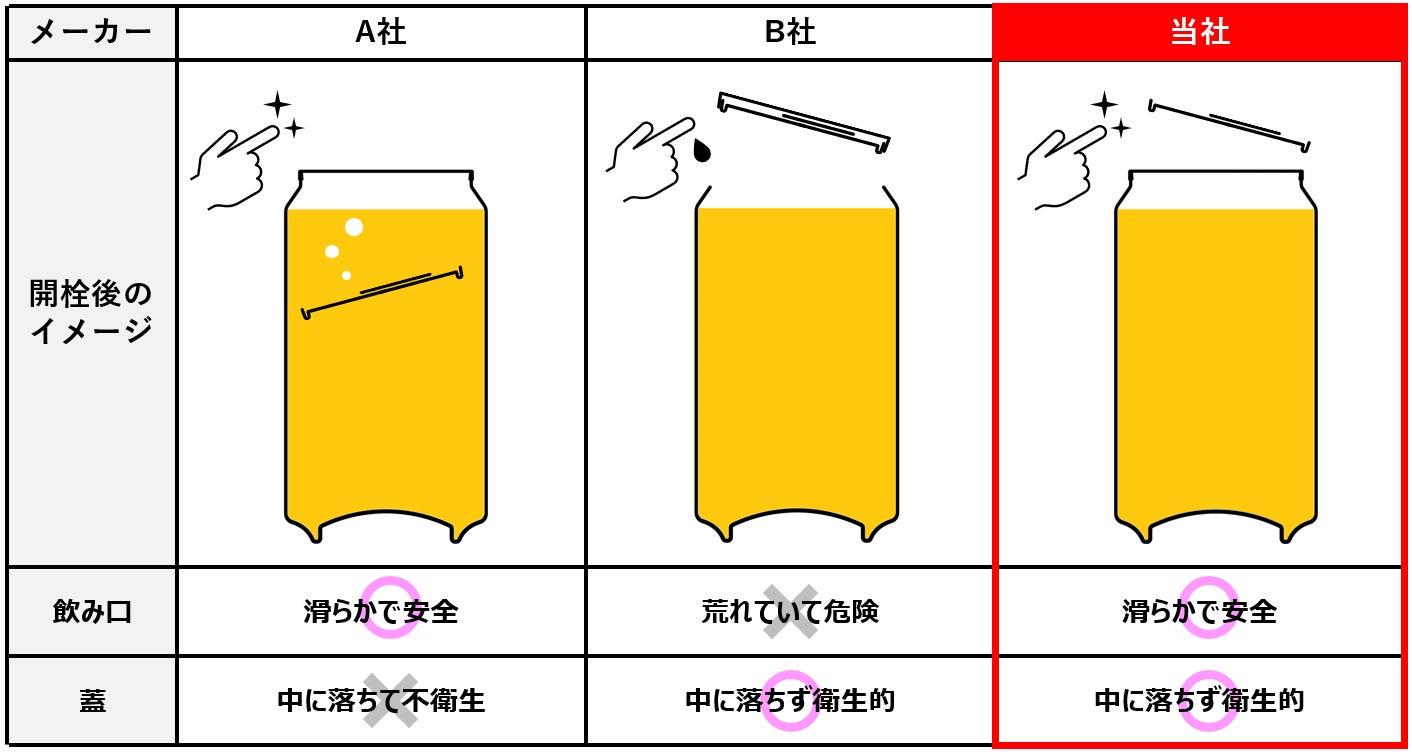 切った蓋が飲み物の中に落ちないため、衛生的です。(他社製品では、切った蓋は飲み物の中に落下してしまいます)