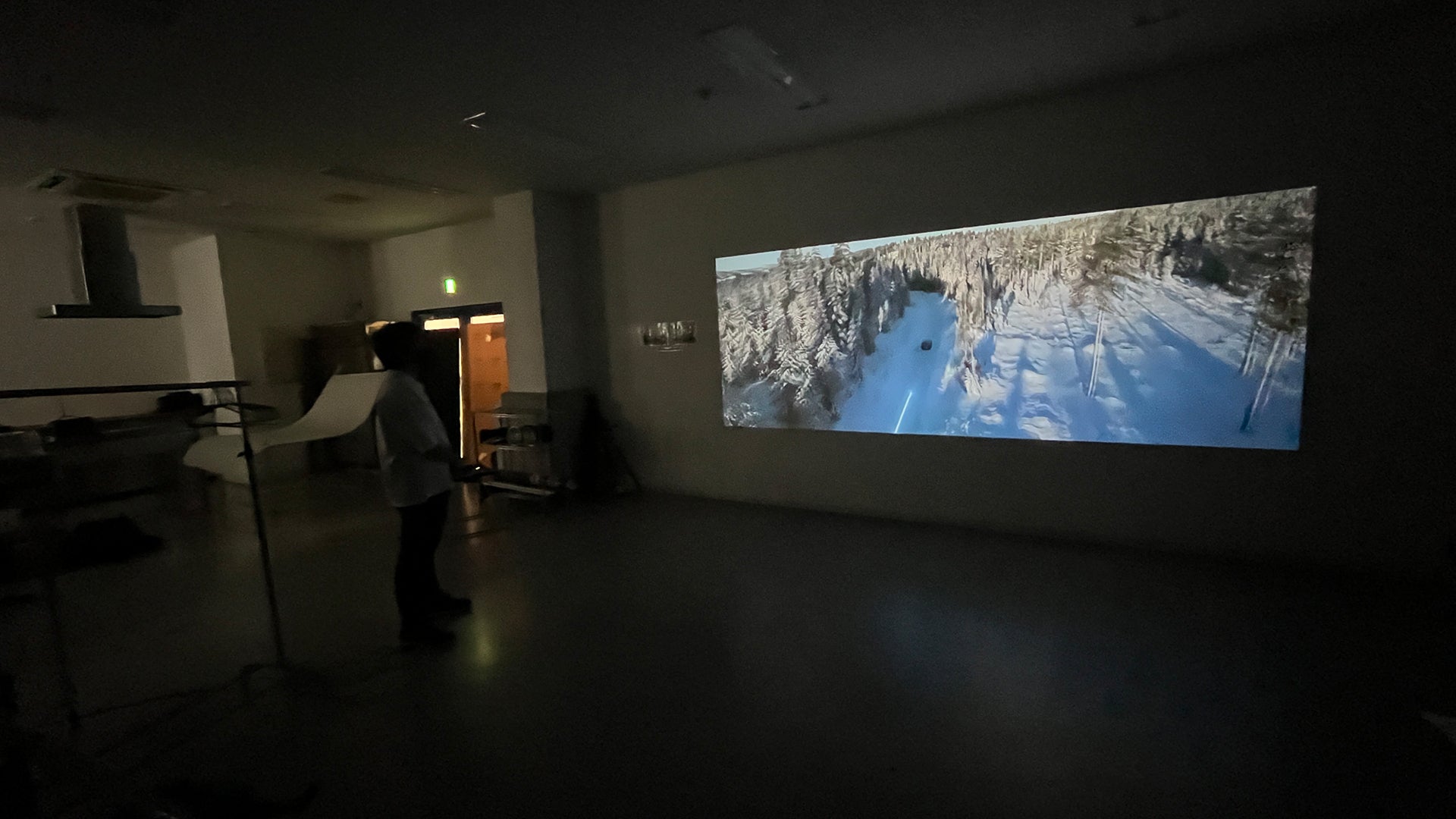 撮影スタジオでのテスト。快晴、カーテンを閉めた室内で約160インチで投影したときの画像。自動フォーカスも問題なく機能した。