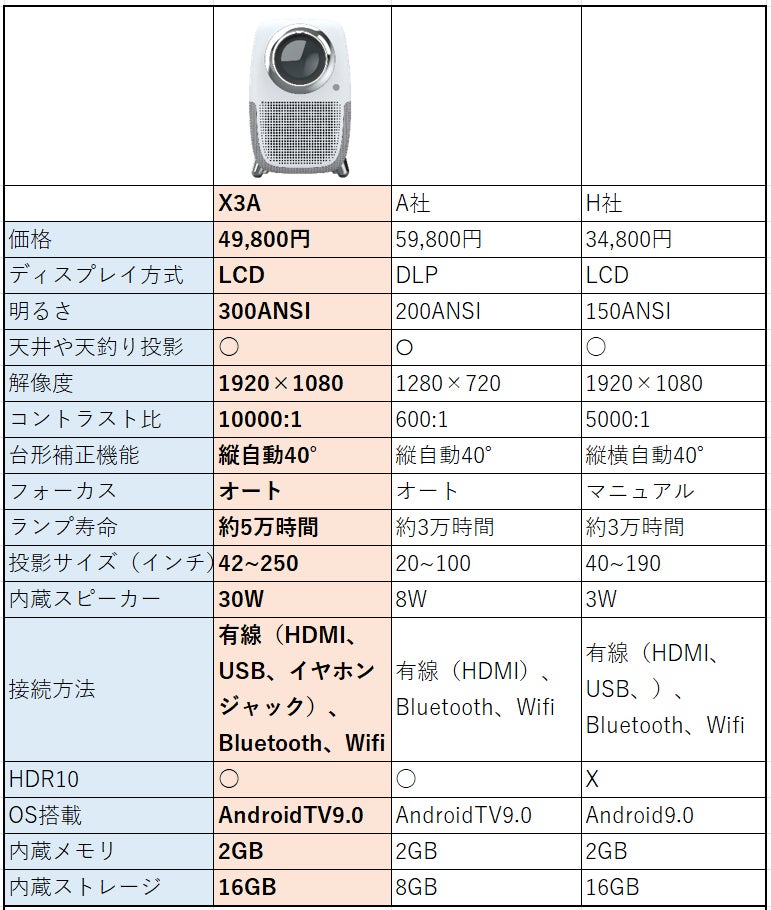 X3A ホームシアタープロジェクターはいかがでしょうか?