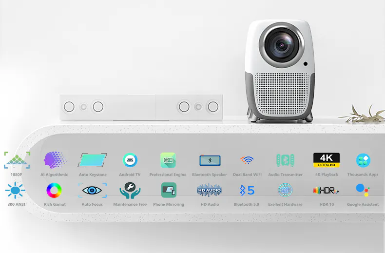 コンパクトプロジェクターとしては最高クラスの1920×1080フルHD画質に加え、明暗や緻密な色表現を可能にするHDR10をサポート。