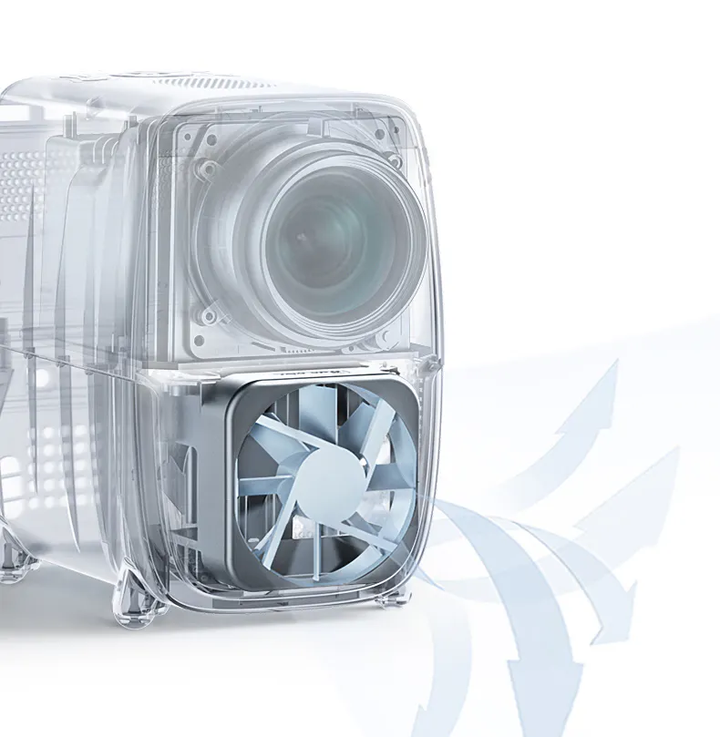 熱がこもると止まってしまうことも多いプロジェクターですが、X3Aは余裕のあるボディに強力な空冷システムを採用。