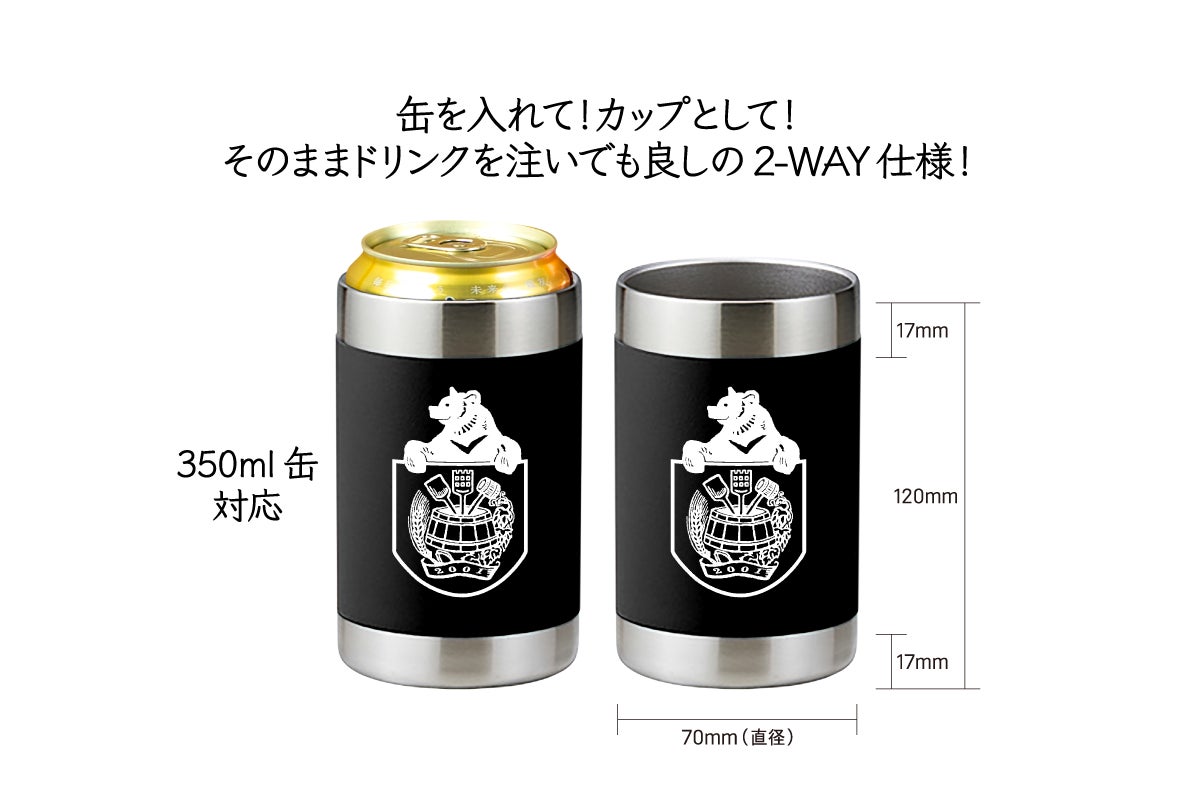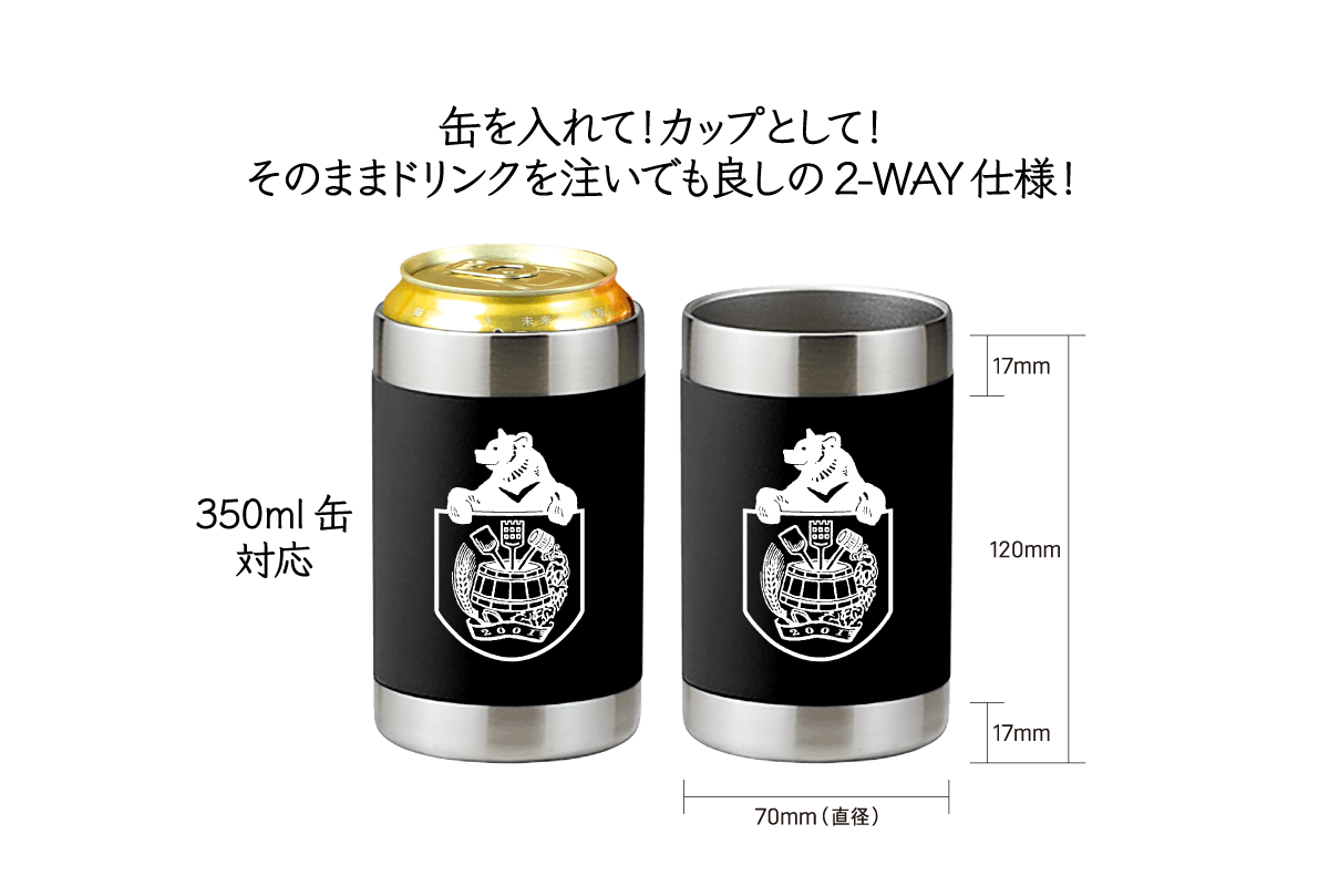 350ml缶がピッタリ収まり、ドリンクを注いでも良しの2-WAY仕様!