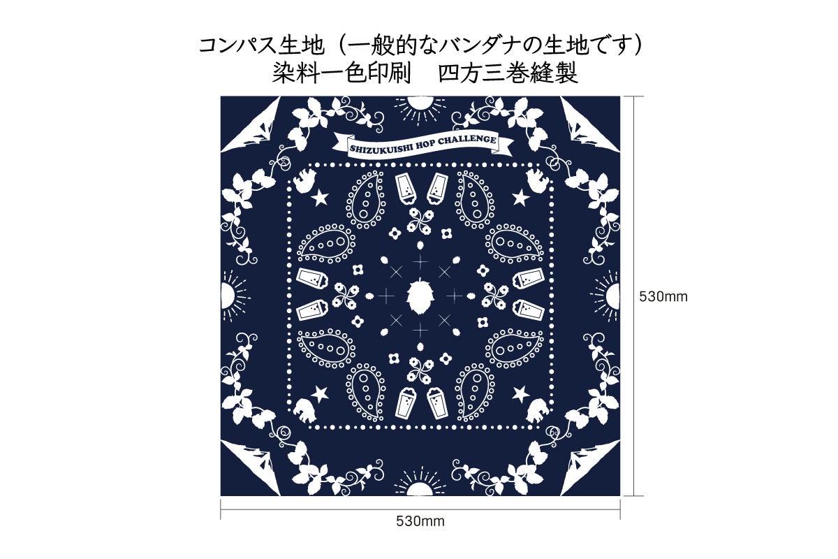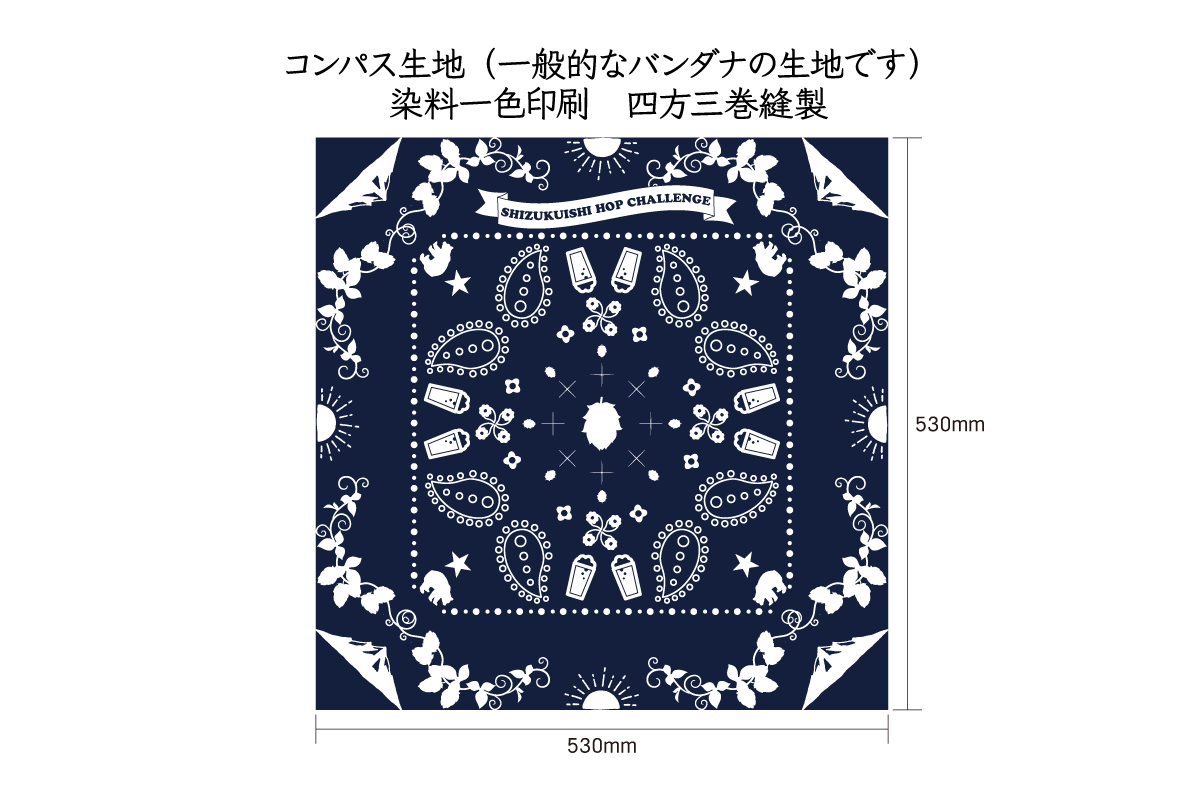 一般的なバンダナと同じサイズと素材で、ご使用用途は多岐に渡ります。