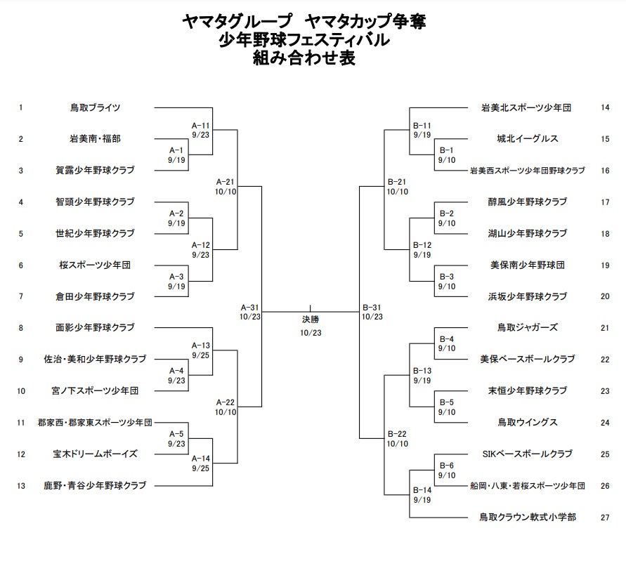 ヤマタカップの組み合わせと日程が決定いたしました!