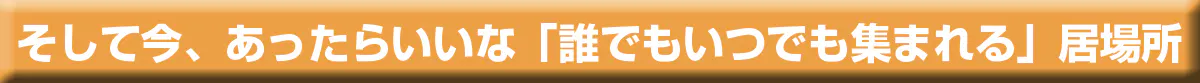 学びの場を必要とする人たちはもちろん、地域で一人ぼっちのお年寄り、学校に行けない子ども、子育てに悩む親などなど、色んな生きづらさを抱える人たちが、何かを強制されたり、押し付けられたりすることなく安心して落ち着ける場所、あたたかく迎えてくれる人のつながりができる場所が、私たちのめざす居場所です