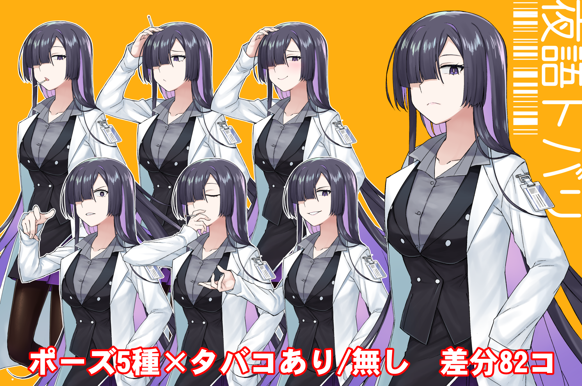 表情差分、ポーズ差分、タバコあり/無し:82種類 画像形式:png サイズ:3470×4509ピクセル