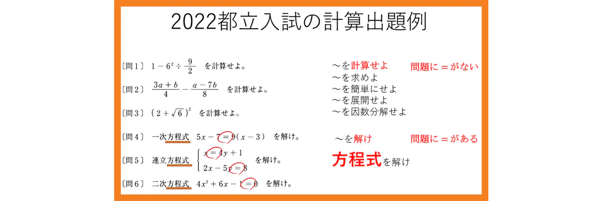 第1講座は小学一年生の足算から考え方を教えていきます。特に約分や通分でよく計算ミスを起こす子は「かたまり」と「分割」のイメージが出来ていないことが原因と思われます。そのイメージづくりの教材から作っていきます。その他は都立高校入試過去問解説を使った内容で、基礎部分の解説をより詳しく付け加えるだけなので、構想はほぼできています。今回、苦手な分野だけのお申し込みも可能ですが、第1講座は学習することをオススメします。第1講座は2次方程式までの計算ですが、中1の生徒も無理なく学習できるような基礎講座で算数から始めます。来年2,3月の高校入試に間に合わせるため、できれば冬休み終わりまでに中学数学全範囲を一通り学んでほしいので、講義内容は学校の授業より早く進んでいます。「単位変換と比率」「変形」「中継」「検算」そして「翻訳と計算の分離」など将来にわたって使える「こんなやり方があったのか」と思える考え方を基礎から訓練することで、応用問題も実はそんなに難しくないと思える数学脳が身につくような講座にします。