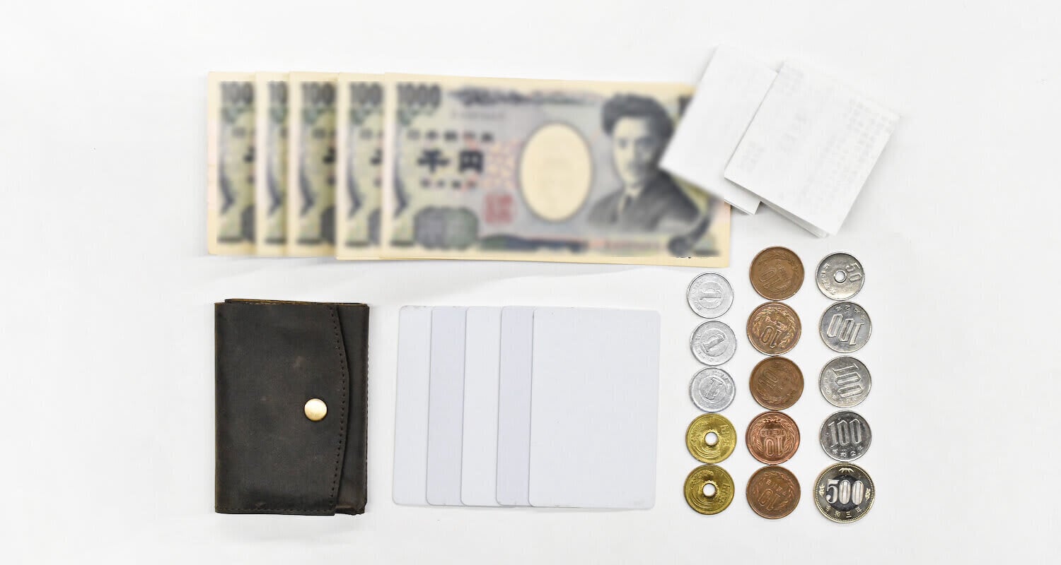 - (収納例)カード5枚/ コイン15枚 / 紙幣5枚 / レシート