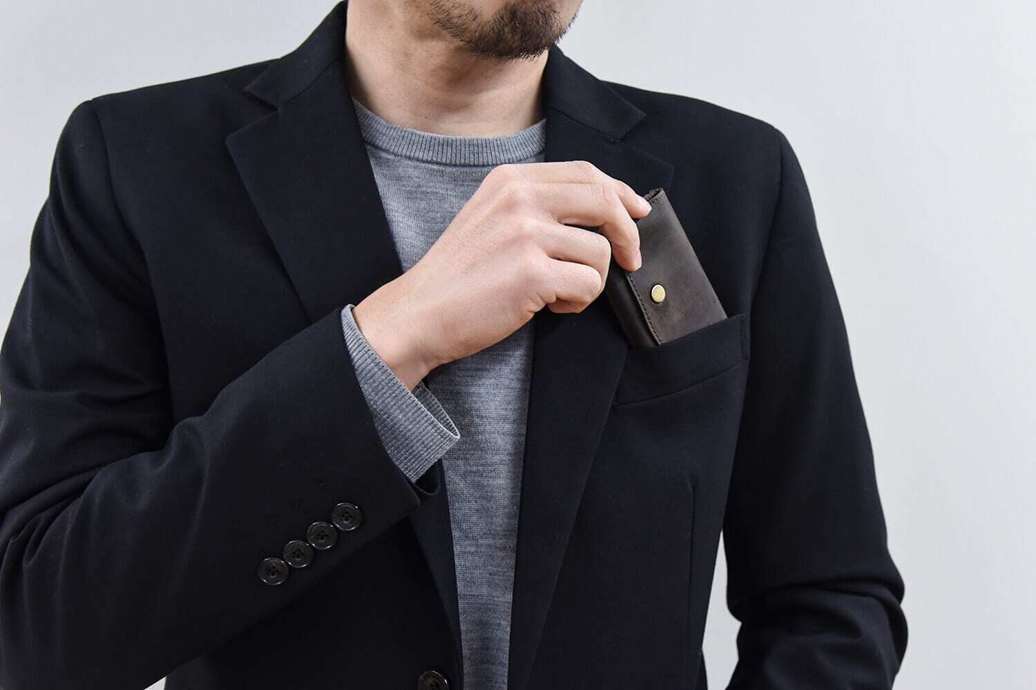 ズボンやジャケットのポケットに入れてもスタイルが崩れないので、手ぶらでもスマートに外出することが出来ます。