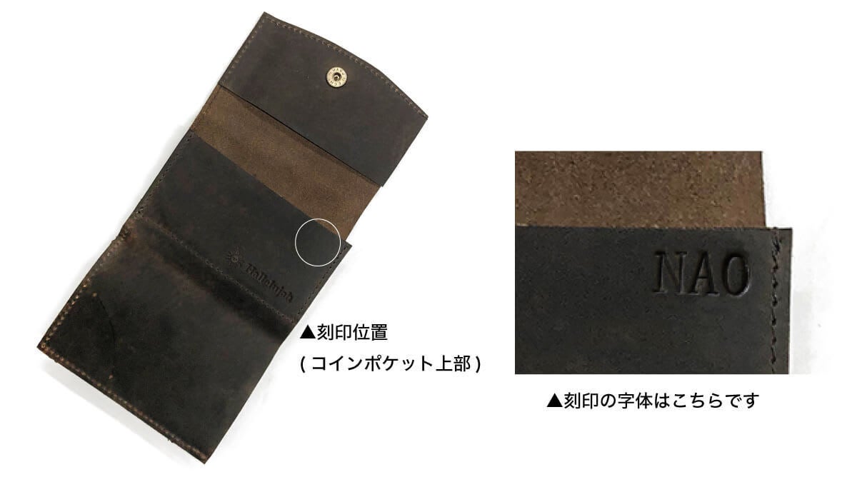 お届けする製品には、コインポケット部分にブランドロゴ刻印が入っております。