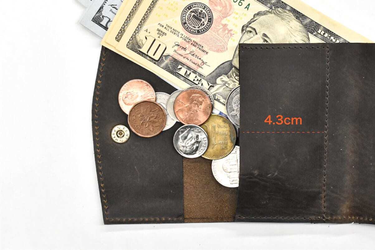 コインポケットの深さは指の第一関節までがすっぽり入ってコインを掴みやすい高さに設計しています。