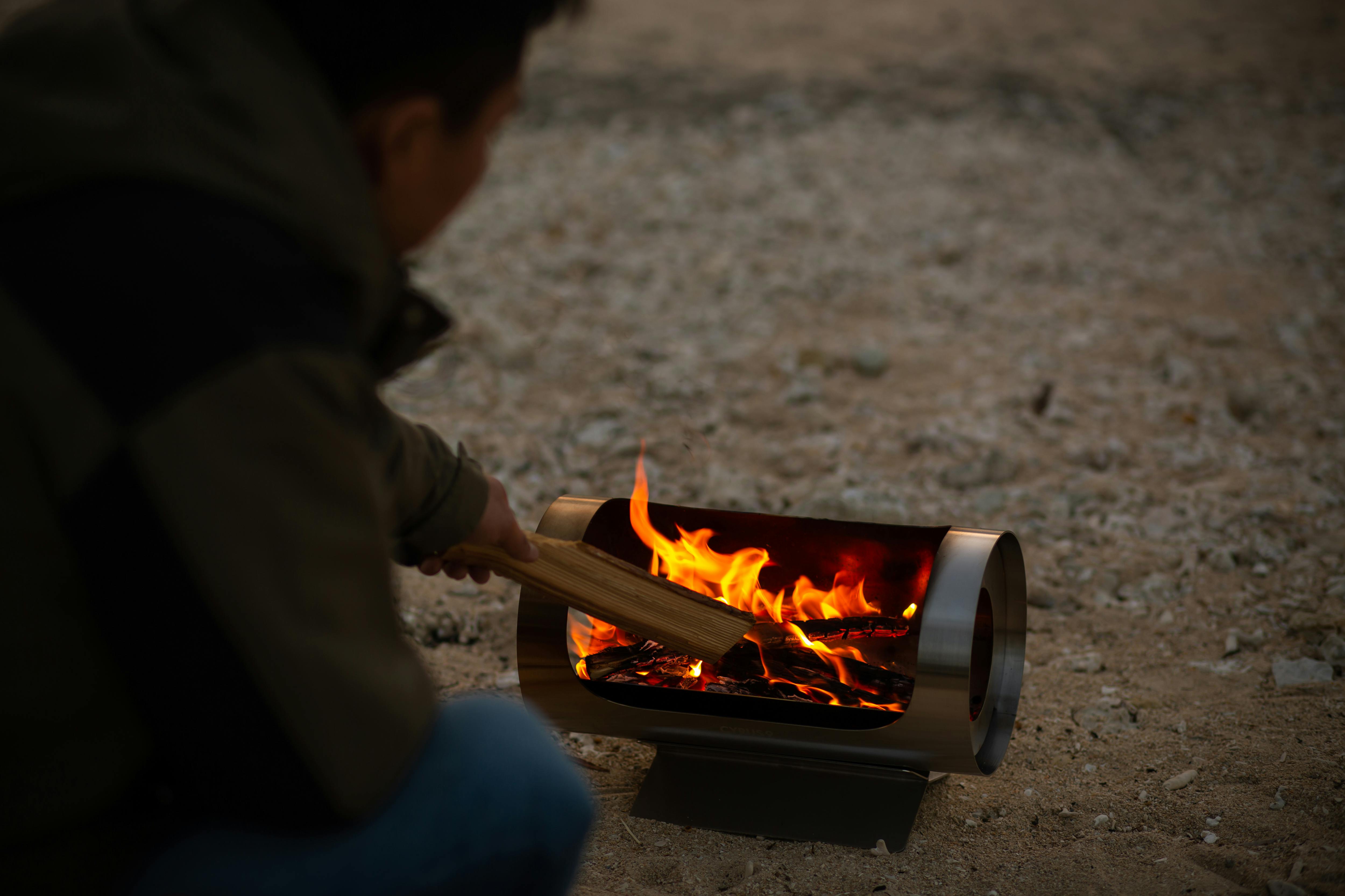 そこでではないのですが、この焚き火台Flame in the Windは簡易薪ストーブのように使いたいなということで、輻射熱で焚き火の前でより暖かさを感じられるような構造となっています。
