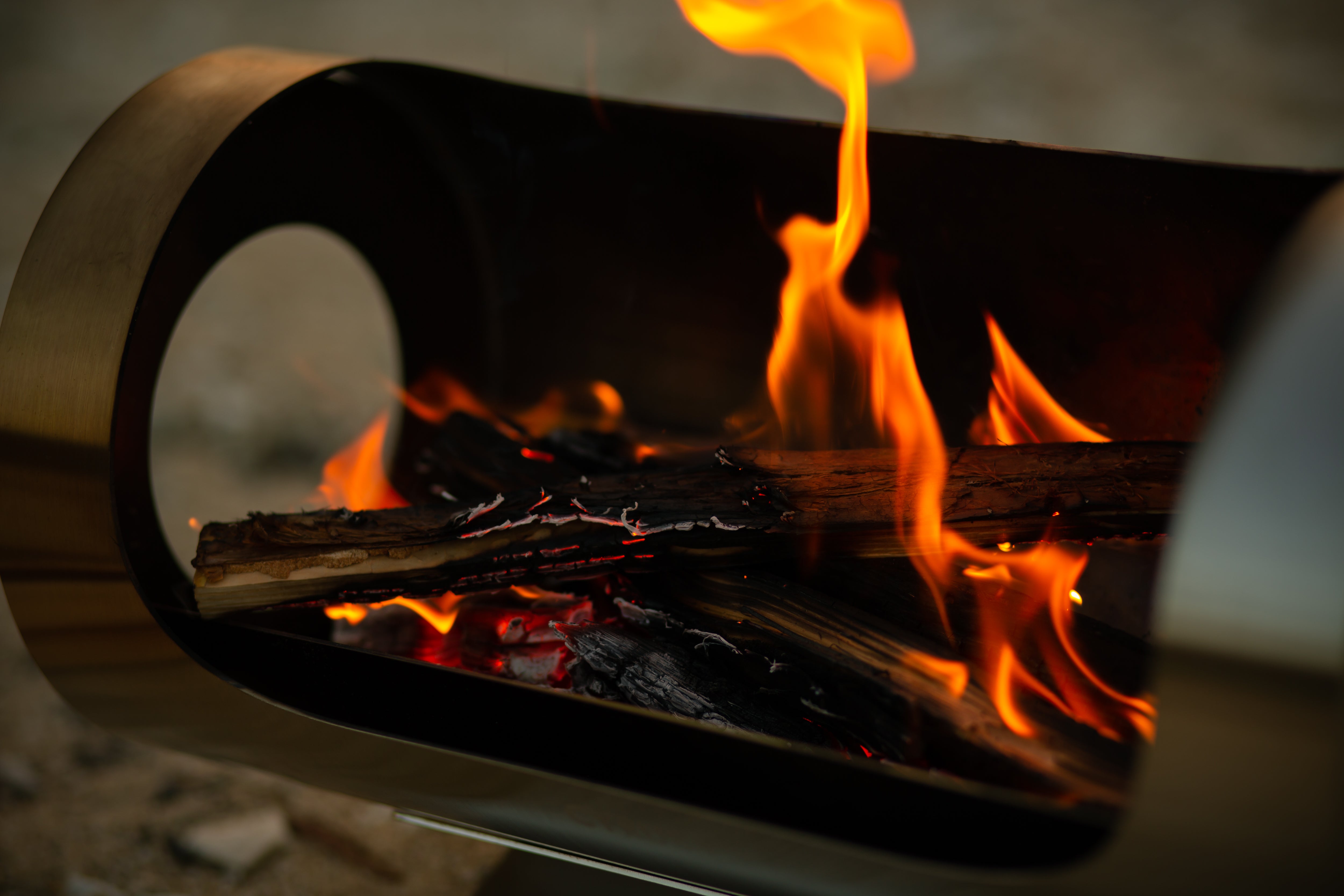 こんばんは。Flame in the Windは、焚火台として出しております。薪ストーブのようにテント内での使用はできませんが、そとでの焚き火を楽しみながら暖房としても使用ができるという点を重視しました。輻射熱でポカポカです。また使用する際によく乾燥された薪であれば、パチパチと火の粉が跳ねる可能性が低くなります。アウトドアストーブとして、これからのベストシーズンの秋や寒さも楽しい冬キャンプをお楽しみください。
