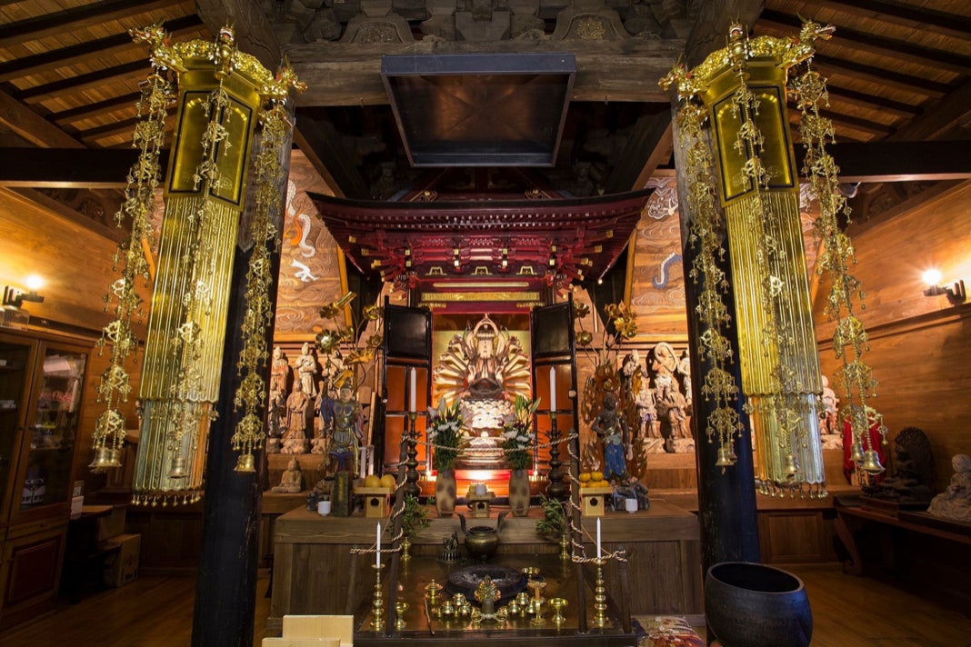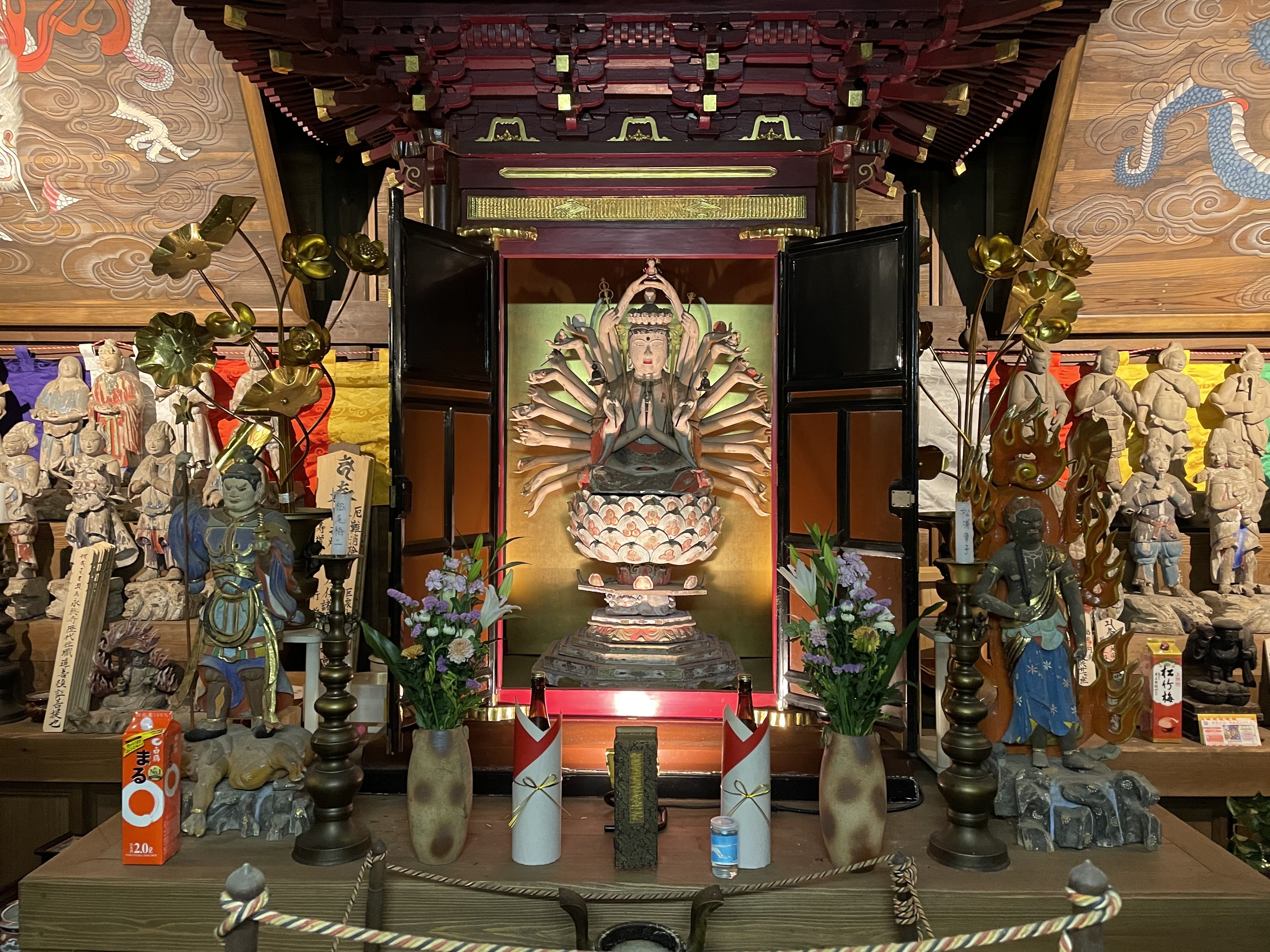 本尊は千手観音様で脇に不動明王と毘沙門天がお祀りされています。
