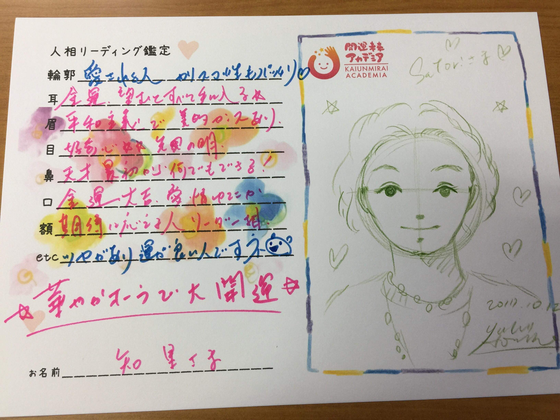 リターン品紹介その14 「似顔絵付き♡人相カウンセリング」
