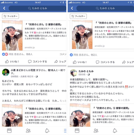 2018/03/14 09:42主催の たみのともみです。 クラファンチャレンジも残りあと6日になりました!!! 色々な方に応援していただいて 本当にありがたいです。 本番までもあと17日。 先日わたしのFBのタイムラインが トップの画像のようになりました(´⊙ω⊙`) わたしがアタマ抱えてる写真がズラリ(笑) たくさんタグ付けでシェアしていただいたからなのですが その記事はこちら https://ameblo.jp/saoritomomi/entry-12359014260.html 本番20日前にして奇行に走りました。 台本を一部真っ白にして 即興で挑むというチャレンジ。 わたしたちはプロの演劇集団ではありません。 舞台に立つのも初めての素人がほとんどです。 通常は架空の設定、架空の人物を あたかもそこにその世界があるかのように その人物が本当にいるかのように 「演じる」というのが演劇です。 この舞台のテーマは 「本当の自分」 それぞれの「本当の自分」の想いや これまで体験してきた葛藤を元にした内容で 「演劇」をしようと考えていました。 だけど 「演じる」になったとたん それが本当に自分が体験したことであっても 「嘘」になるんですよね。 通常はその「嘘」を何回も何回も 繰り返し稽古を重ねていくことで 役になりきり 役の感情が自分の感情のように 表現できるようになると思うのですが 私たちはそこを目指してるのか???? と、ハッとしたのです。 ありのままの 本当の自分に還ったとき 演技ではない本当のその人自身を表現したとき それを観る人も魂が震えるような感動がある。 そう信じるからこそ 挑戦したい 証明したい という想いでスタートしたこの舞台。 だけど気づかない間に 「あたりまえ」 という枠にはまり込んでいました。 色々「ありえない」と言われてきた この舞台。 じつは結構気にしてたのかもしれません(^^;) だけど最初から「ありえない」なら 思いっきり「ありえない」ものにしてしまえばいい!! 舞台でメインの三人は 役を演じるのでなく 生のその人の内側を表現する ドキュメンタリーです。 舞台の上でそれぞれが表現する 「本当の自分」を どうぞお楽しみに❤️ そしてその姿を 一番肌で感じたい方はぜひ! 特別席でご覧くださいっ!!!!! リターン品として提供しています(≧∇≦) クラファンもラストスパート‼️ どうかミラクル起こせますよう お力を貸してください‼️ もっと見る