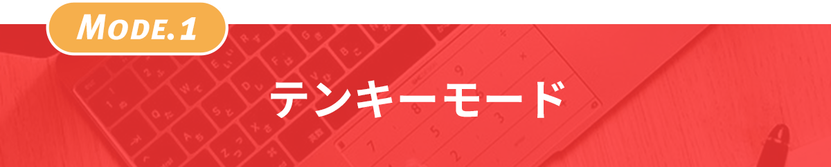Excelでの数値入力、表計算、家計簿などで活躍するテンキーモードはもちろん、