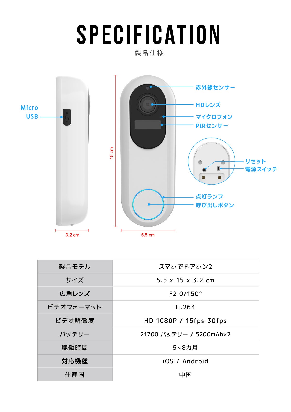 ワイヤレスビデオドアホンは、iOSでもAndroidでも両対応。マイクとスピーカーがドアホンに